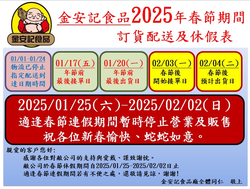 適逢春節即將到來,物流貨運量增加,為確保您所訂購的商品能如期到貨,請您提前訂購,不便之處還請見諒。