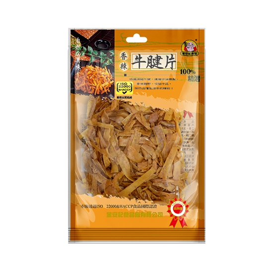 內 容 物:牛板筋、砂糖、醬油、香辛料(蔥、辣椒、胡椒、八角、甘草、玉桂、丁香)、芥花油、碘鹽、甘油、調味料(麥芽糊精、琥珀酸二鈉、5'-鳥嘌呤核苷磷酸二鈉、5'-次黃嘌呤核苷磷酸二鈉、胺基乙酸、檸檬酸鈉、食鹽、DL-胺基丙酸)、香料(中鏈三酸甘油酯、香料、乙醇、丁香油、肉桂油、檸檬油、大豆油、葵花油)、己二烯酸(防腐劑)、鮮紅素(氯化鈉、亞硝酸鈉)、香料、香料【大豆油、葵花油、中鏈三酸甘油酯、香料、維生素E(抗氧化劑)】、混合濃縮生育醇(抗氧化劑)、食用黃色四號、食用黃色五號。